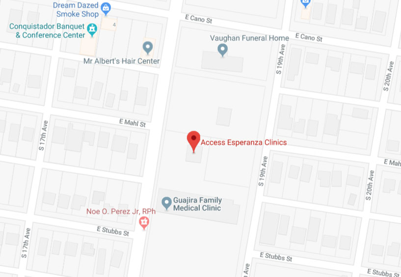 The information provided on this site is intended for your general knowledge only and is not a substitute for professional medical advice or treatment. Please call Access Esperanza Clinics at 956-688-3700 to set an appointment at any of our clinics.