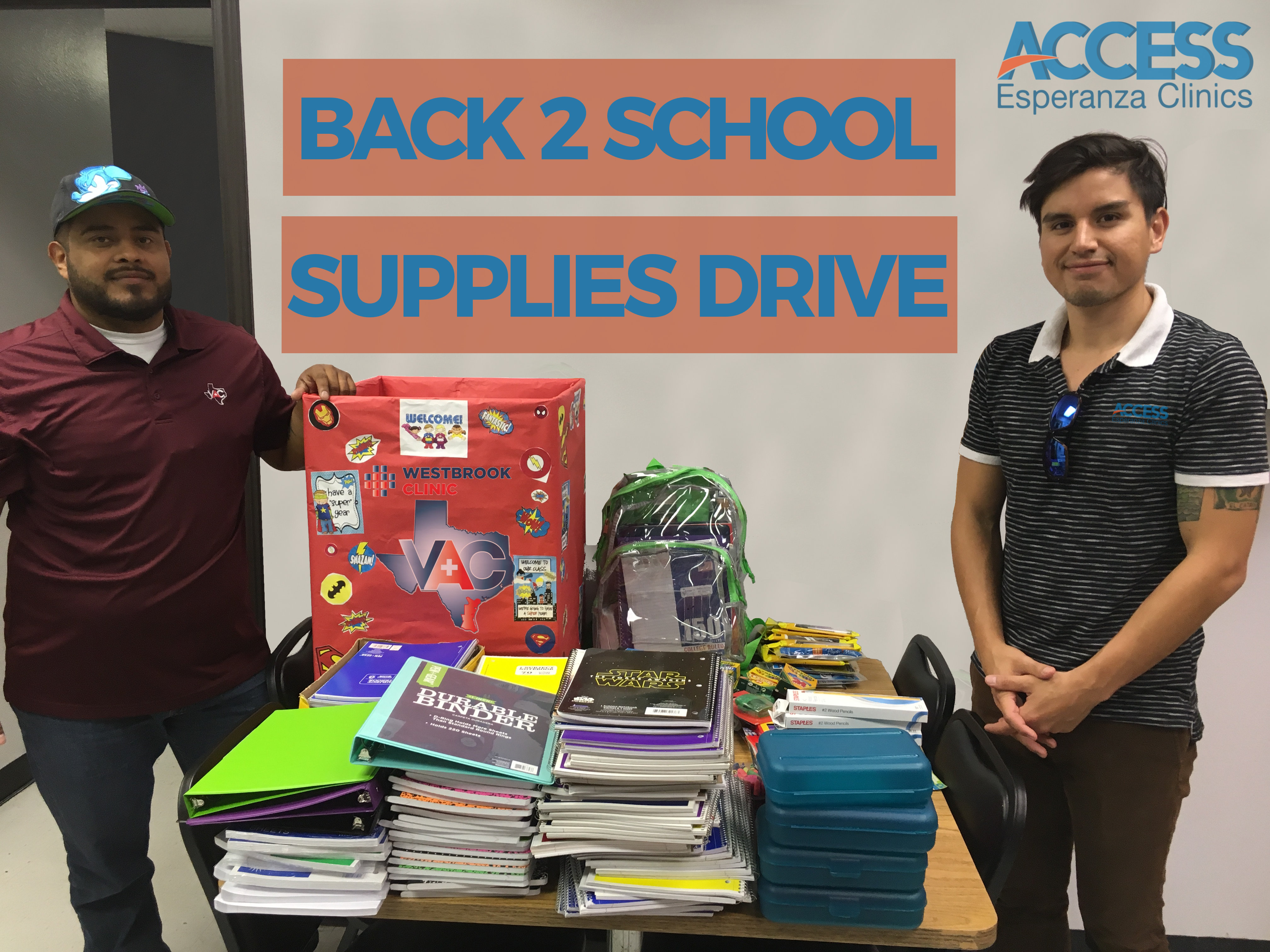 Access Esperanza Clinics staff sourced over 800 items for the Valley AIDS Council’s school supply drive! Cheers.